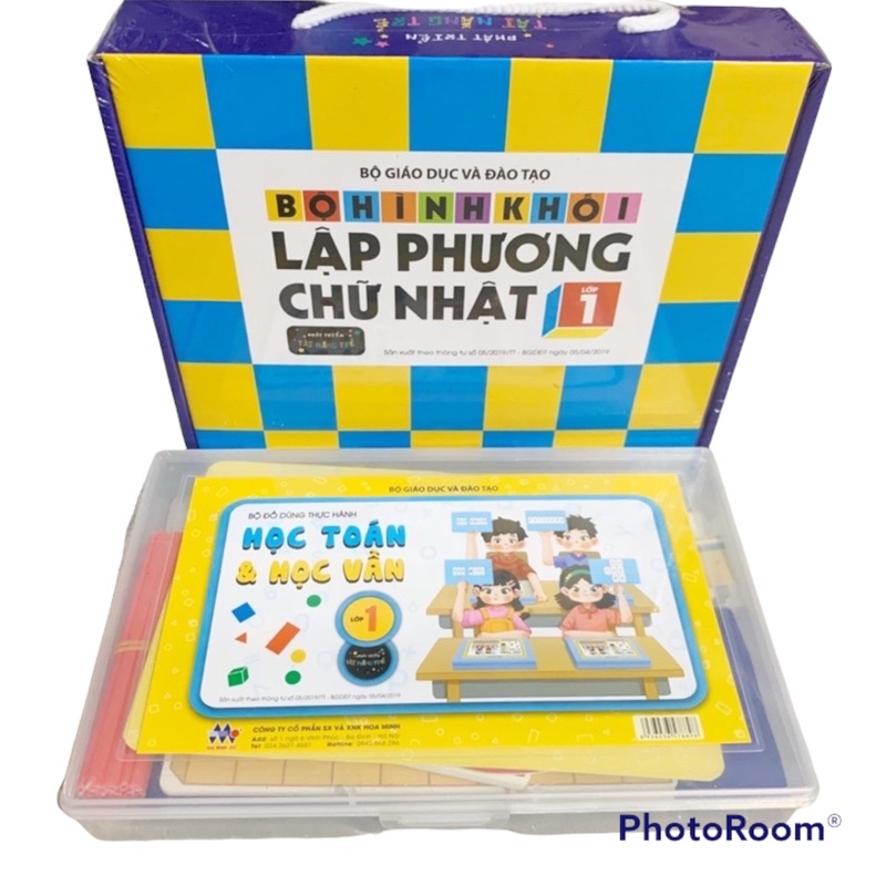 Combo 2 hộp Bộ đồ dùng thực hành Toán và Tiếng Việt và Bộ đồ dùng học Toán Bộ hình khối lập phương và chữ nhật Lớp 1